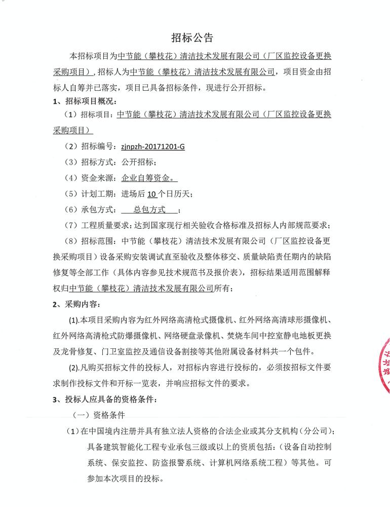 廠區(qū)監(jiān)控設(shè)備更換采購項(xiàng)目招標(biāo)公示