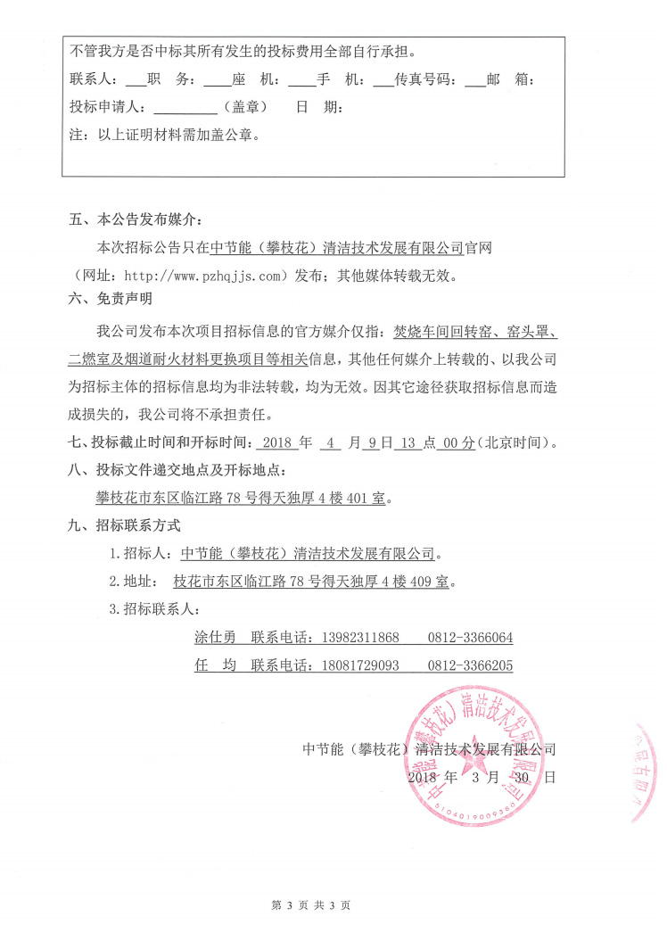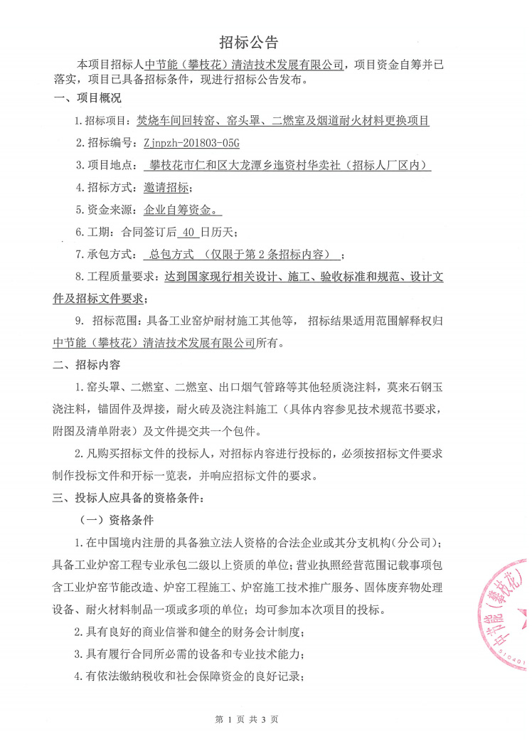 焚燒車(chē)間回轉(zhuǎn)窯、窯頭罩、二燃室及煙道耐火材料更換項(xiàng)目招標(biāo)公示